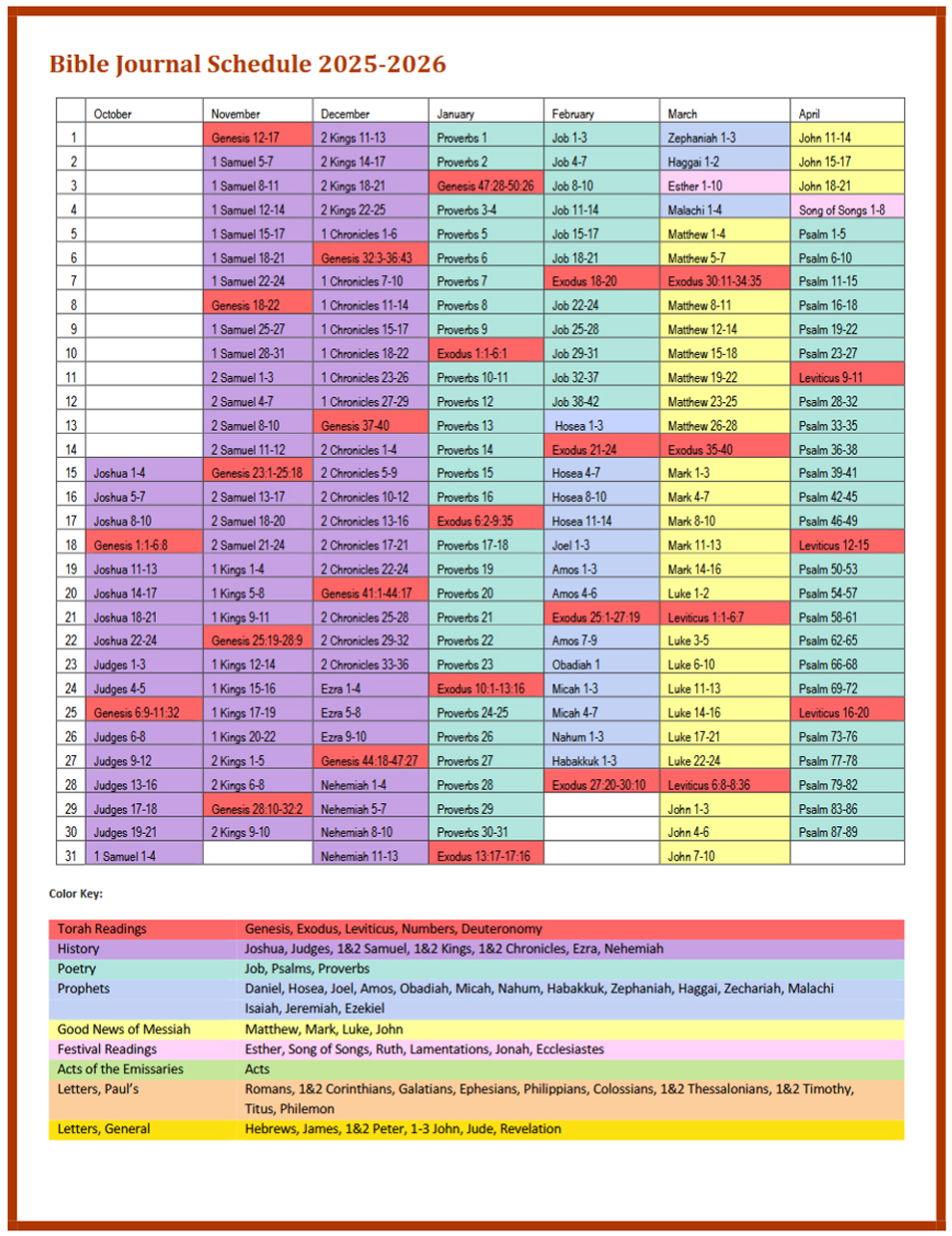 Follow along with our Daily Bible Reading Schedule below. Click Here to download a Free copy.